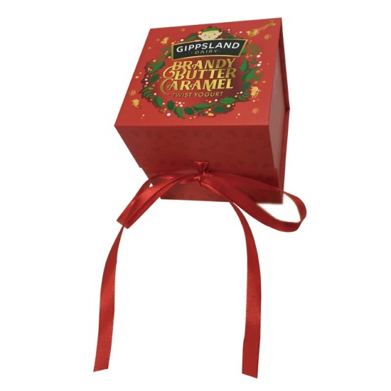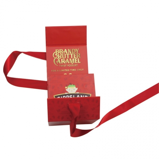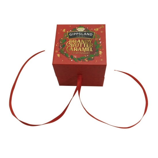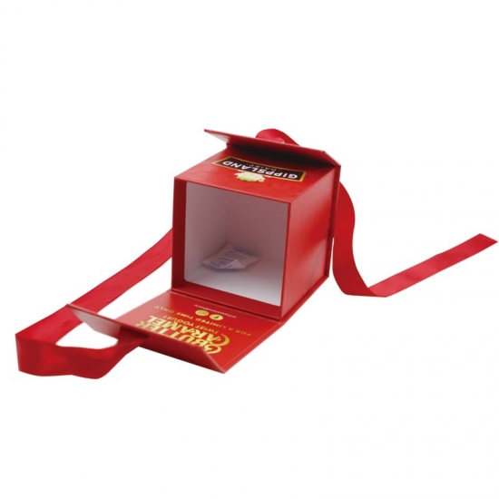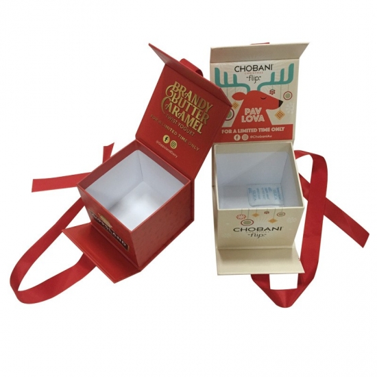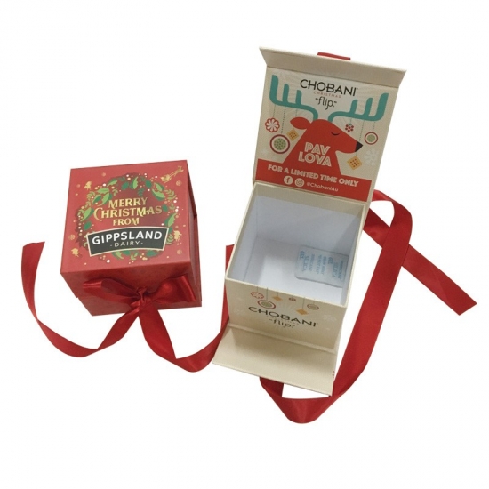 Il s'agit d'une petite boîte cadeau de Noël magnétique en paquet plat qui a fait par papier d'art C2S 157 g + carton gris 1200 g assorti ruban rouge.