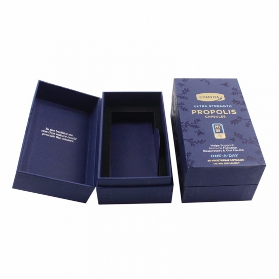 Normally 15-20 days after design/sampleBoîte à clapet en forme de livre en papier bleu spécial avec estampage à chaud