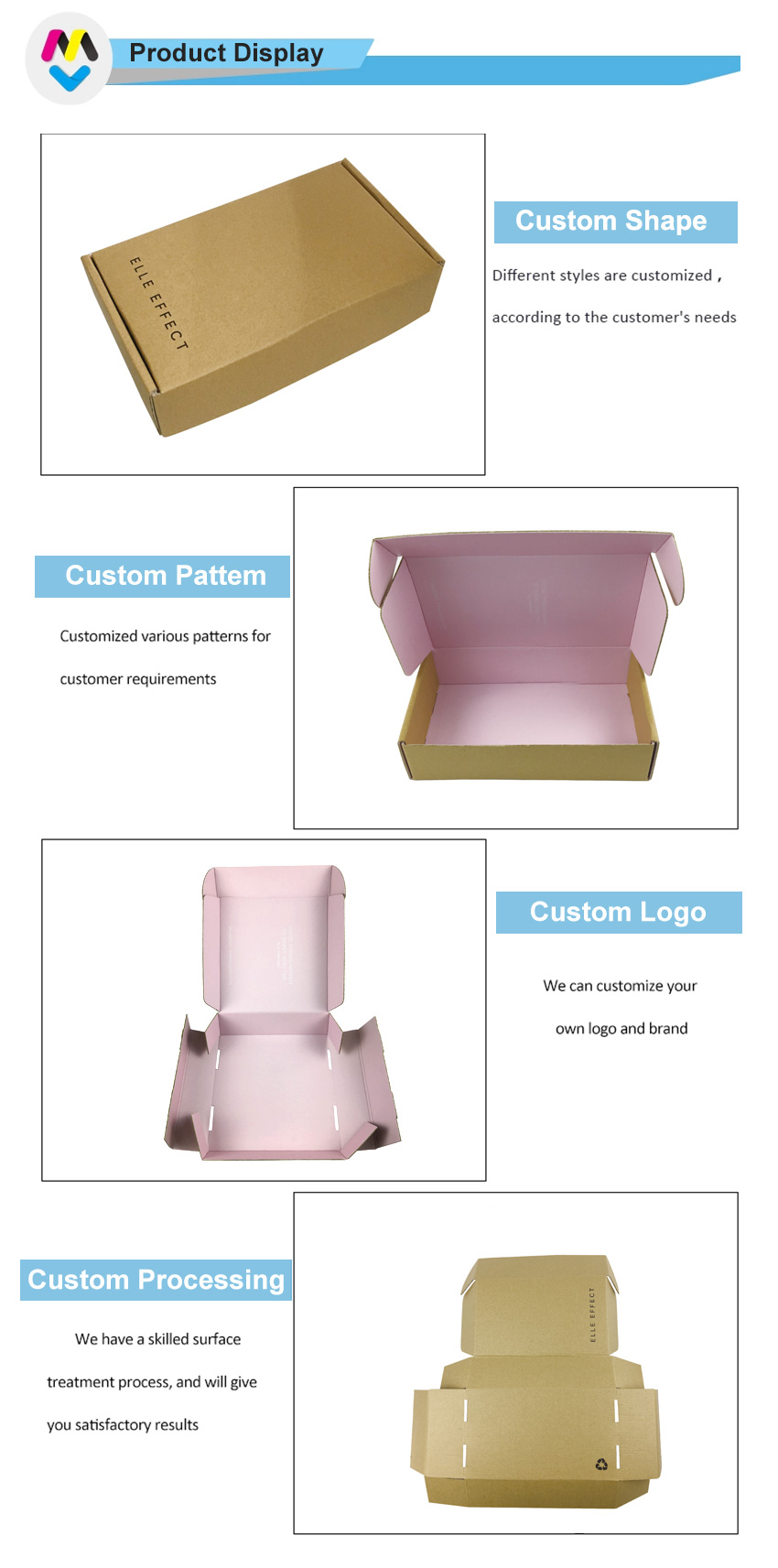 Emballage cadeau en papier brun avec logo personnalisé de luxe en gros, carton d'expédition en carton ondulé, boîte d'expédition de produit recyclé, boîte d'emballage plate.