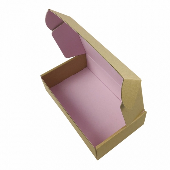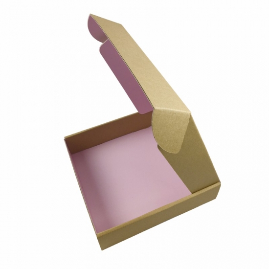 Boîtes d'expédition à plat avec logo personnalisé, prix bon marché mais de bonne qualité, intérieur marron personnalisé noir.