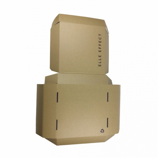 Cartons d'expédition de déménagement pliés en carton ondulé marron très résistants et personnalisés avec une impression solide CMJN fantaisie et de bonne qualité.
