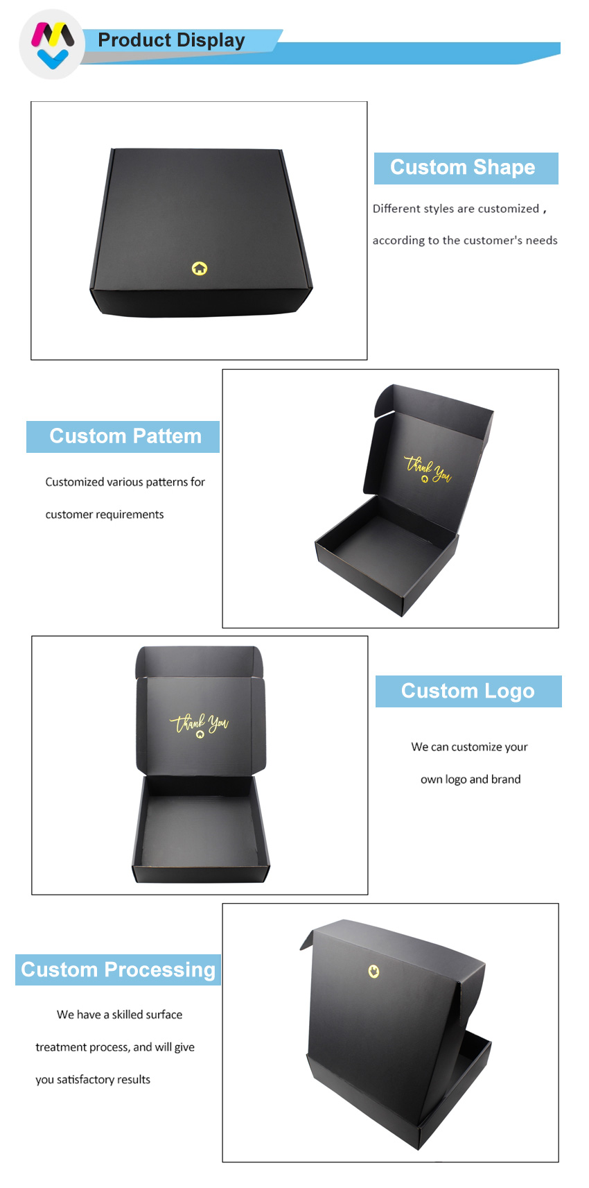 Normally 15-20 days after design/sampleBoîtes d'expédition en carton ondulé noir uniques et exquises