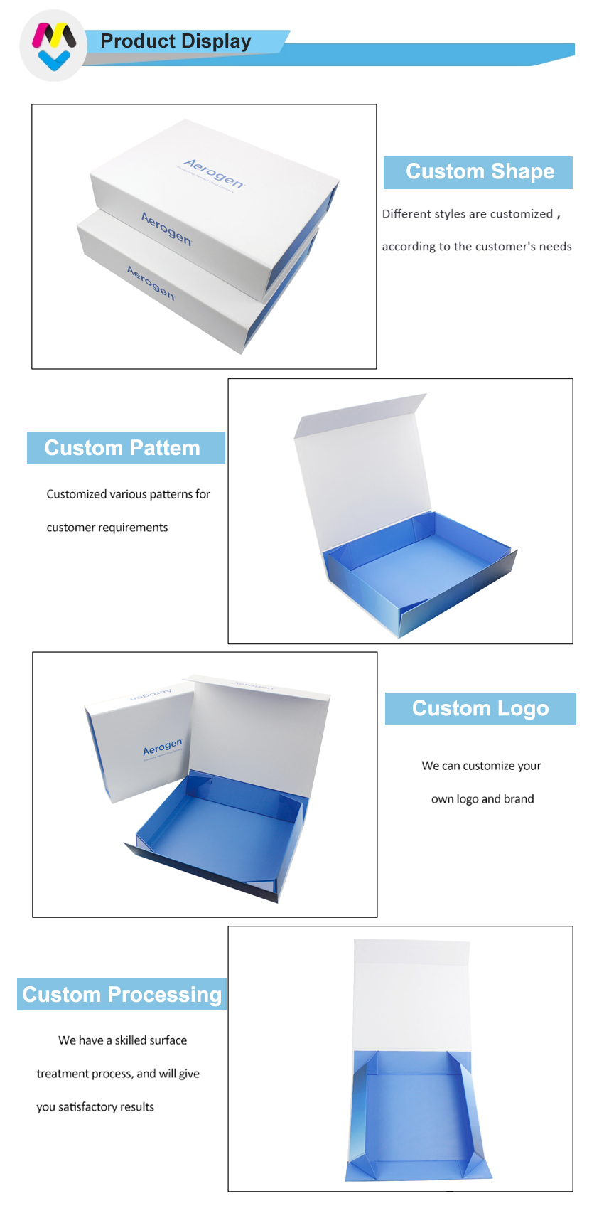 Normally 15-20 days after design/sampleBoîte blanche avec logo imprimé à l'intérieur Boîte pliable bleue unie