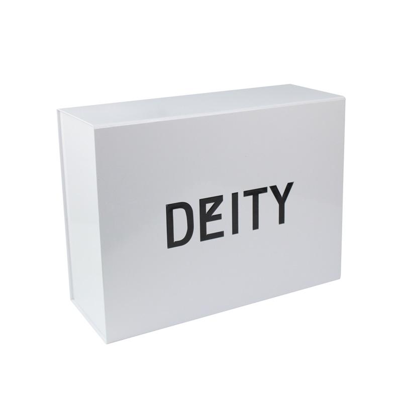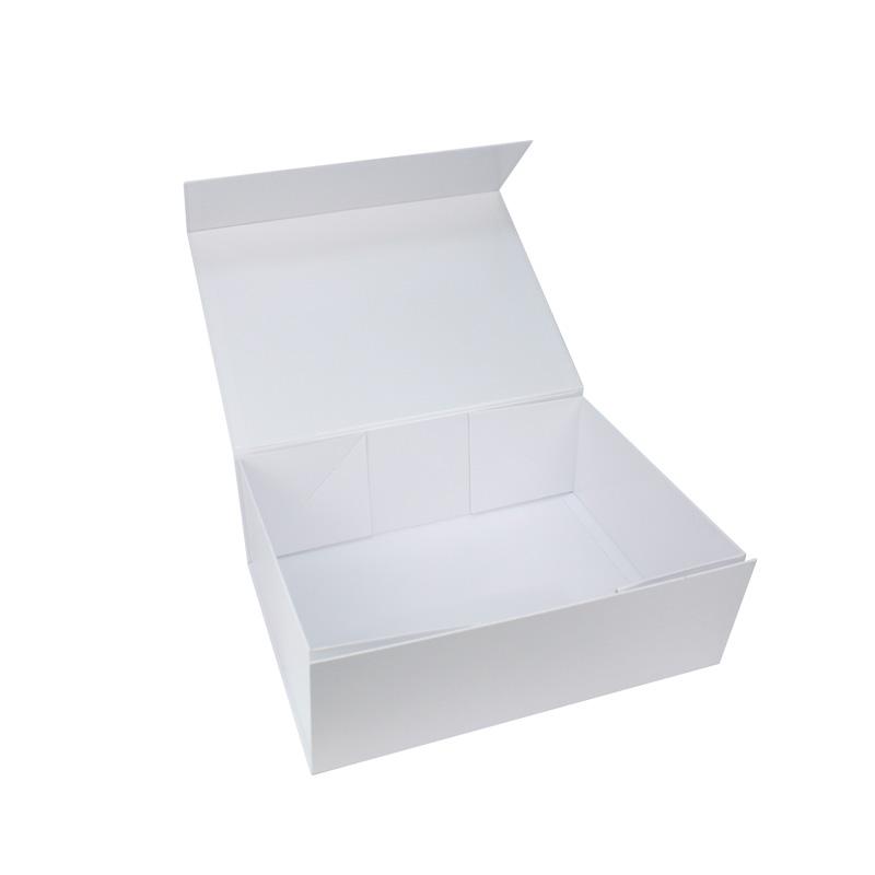 Coffret cadeau pliable blanc brillant avec logo personnalisé, taille, couleur, finition, doublez la valeur de vos produits.
