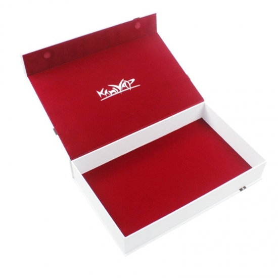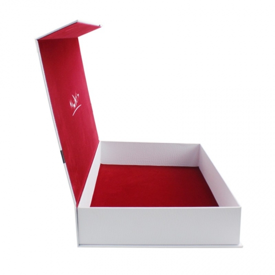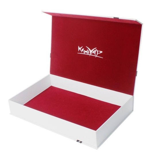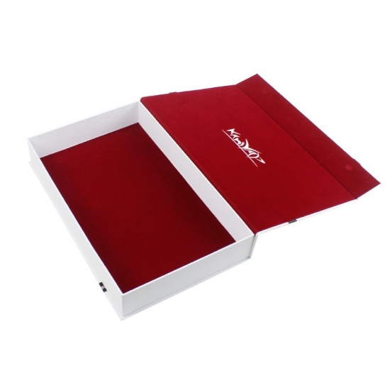 C'est un livre en forme boîtes cadeaux magnétiques qui a fait par papier spécial à texture blanche + carton gris 1200g, couverture intérieure avec tissu en velours rouge qui améliore les boîtes plus haut de gamme. Nous pouvons personnaliser la taille selon votre demande.