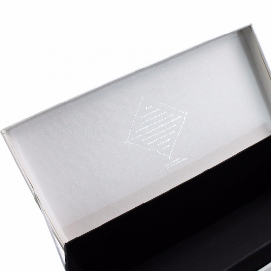 2) Matériau : papier d'art couché 157 g + carton gris 2 mm