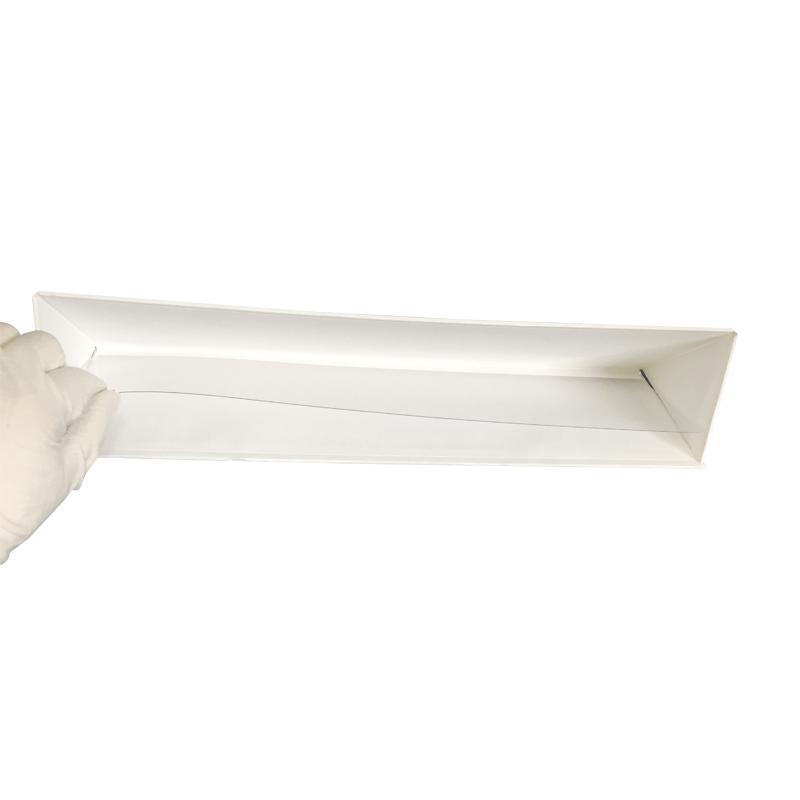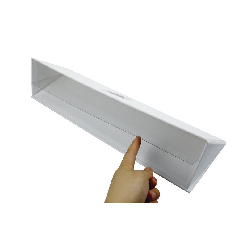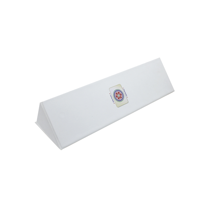 C'est un affichage triangulaire blanc boîte qui a fait en papier d'art couché 157g + carton gris 1200g, blanc mat avec logo imprimé sur la couverture, intérieur vierge sans aucune impression, il peut être emballé à plat et facile à monter.