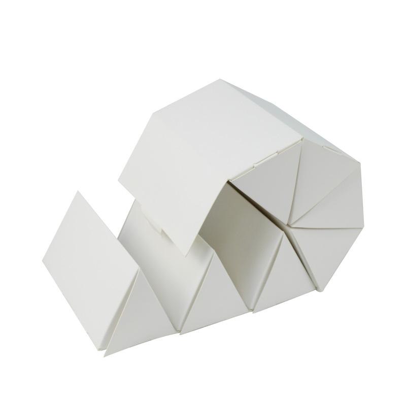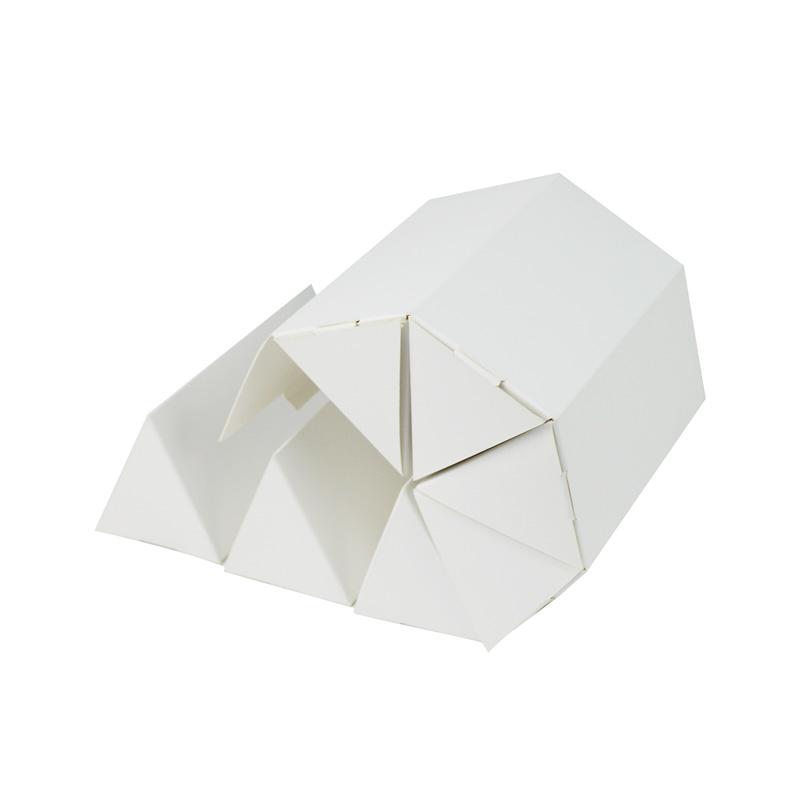 Boîte cylindrique en carton avec plusieurs unités en forme de triangle, logo personnalisé, taille, couleur, finition, doublez la valeur de vos produits.