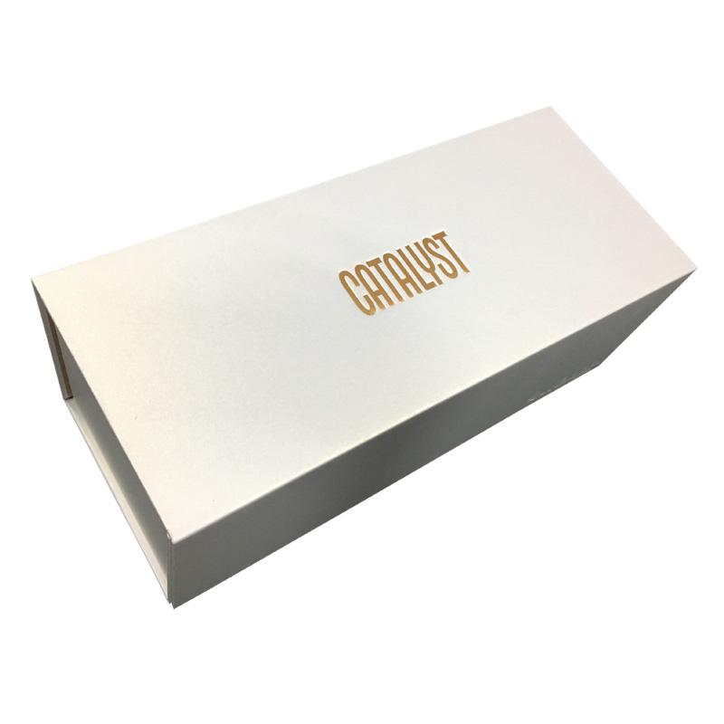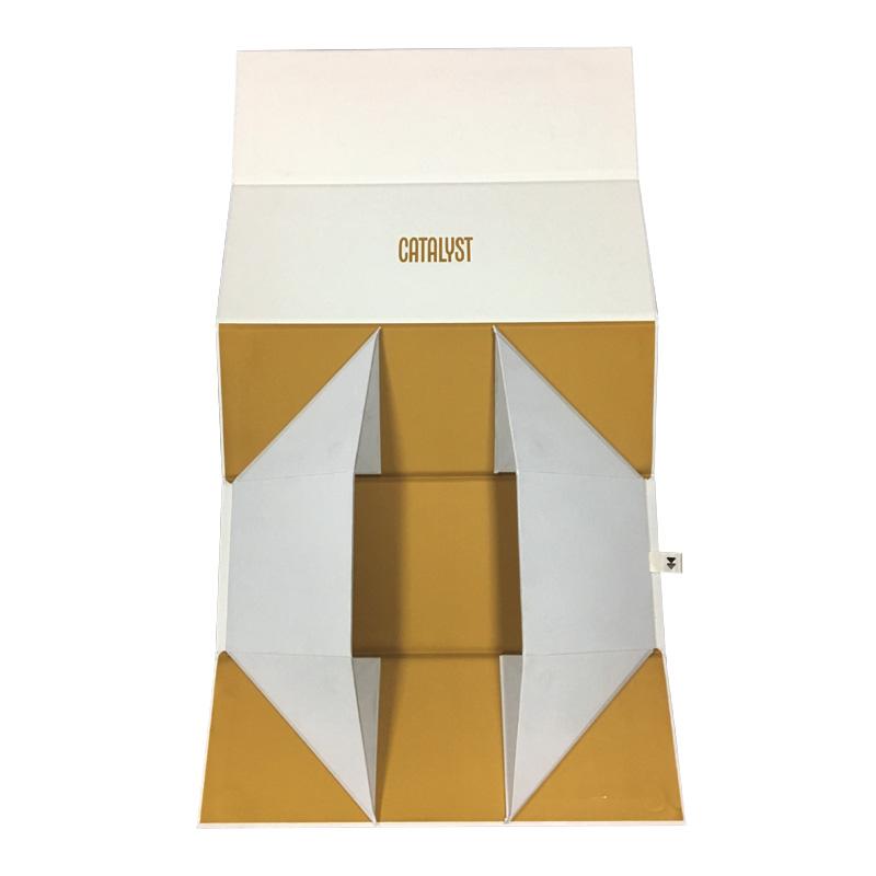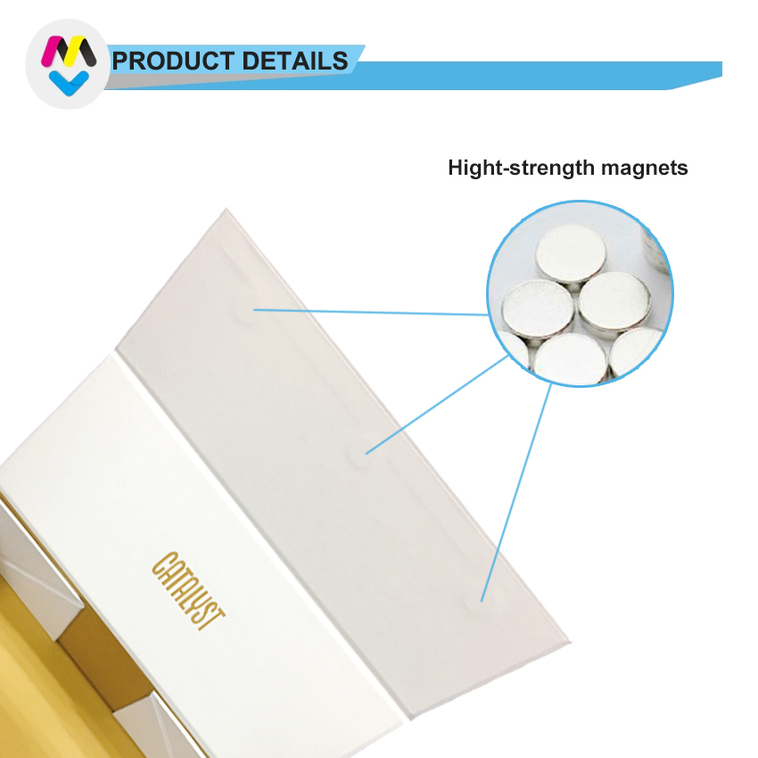 Boîte d'emballage pliable avec logo personnalisé romantique et festif, estampage à chaud en or avec impression couleur spot complète. Finition de laminage mat, estampage à la feuille d'or du logo avec fermeture magnétique.
